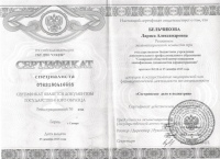 В 2005 прошла курсы повышения квалификации в ГО при ИППК «Новые педагогические технологии в дошкольном образовании», а в 2007 была аттестована на II квалификационную категорию.