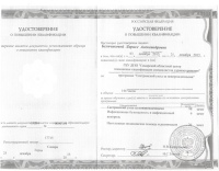В 2011 году и 2016 курс усовершенствования по циклу «Ультразвуковая диагностика» (УЗ исследования в гастроэнтерологии в онкологии, урологии, УЗИ поверхностных структур) и получил сертификат врача ультразвуковой диагностики.