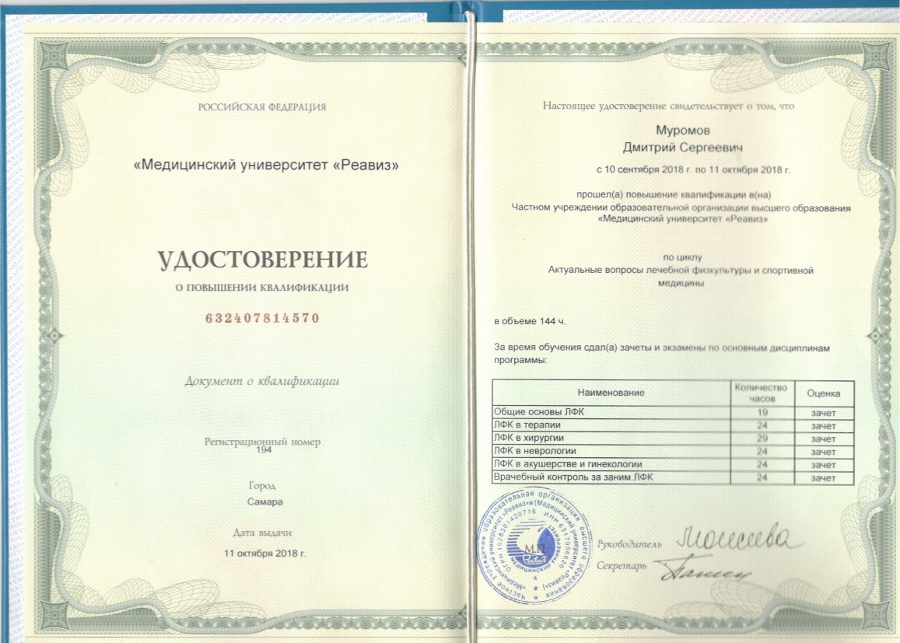 В 2003 году получил дополнительную специализацию «Лечебная физкультура и спортивная медицина» в медицинском университете «Реавиз».