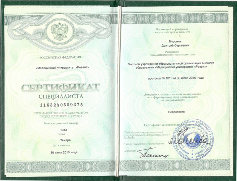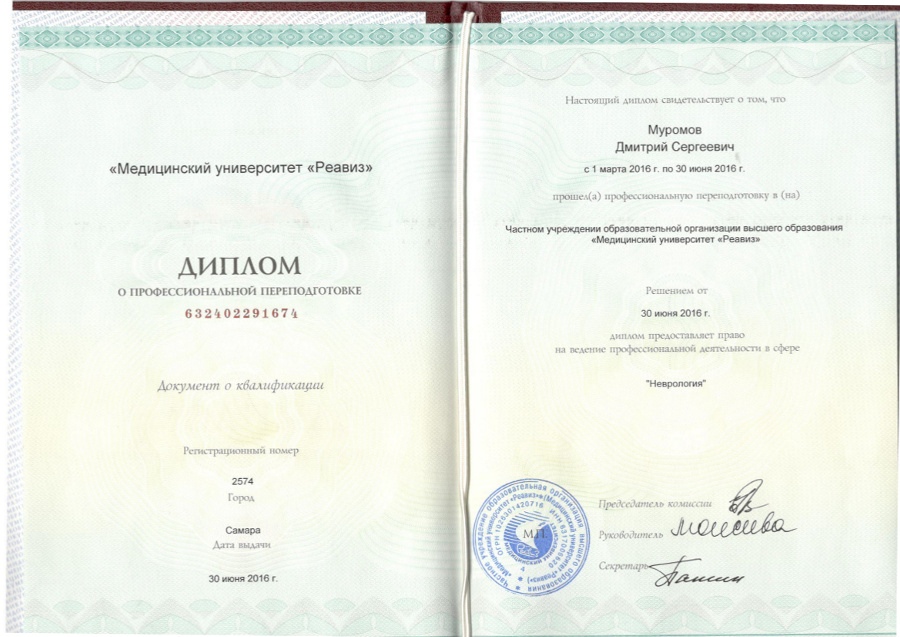 С 1998 по 2000 год проходил обучение в клинической ординатуре Самарского государственного медицинского университета по специальности «Неврология».