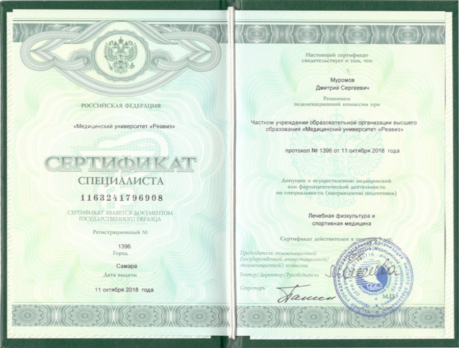 В 2022 году получил дополнительную специализацию ЛФК инструктора.
