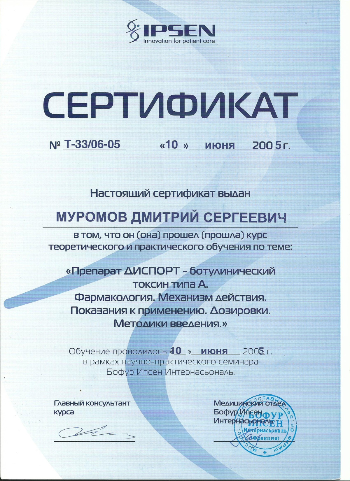 В 2006 году прошел первичную специализацию по специальности «Ультразвуковая диагностика».